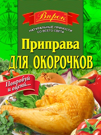 Приправа придает приятный вкус и аромат блюдам из куриных окорочков и любой домашней птицы. Готовить по усмотрению - на гриле, сковороде или в духовке.
