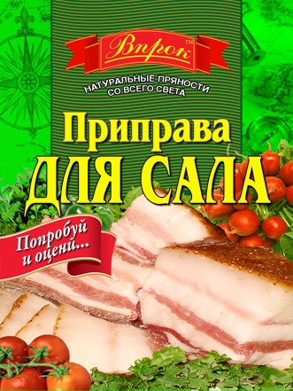 Используя эту приправу вы сможете приготовить приготовить вкусное ароматное сало. Так же єта приправа превосходно подходит к холодным закускам, салатам, шпику, копченостям.