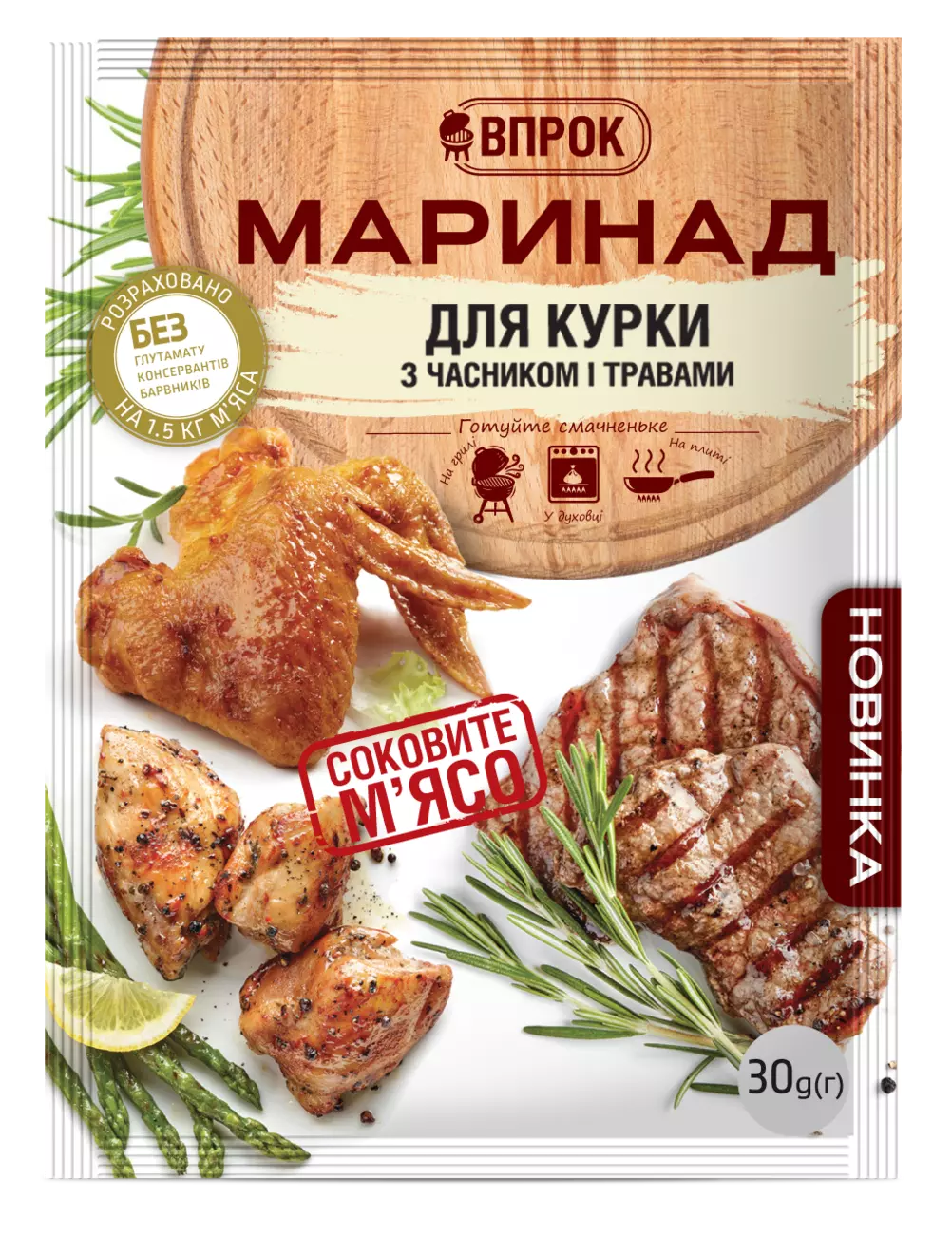 Приправа маринад для курки з часником і травами 30 г ТМ "Впрок"