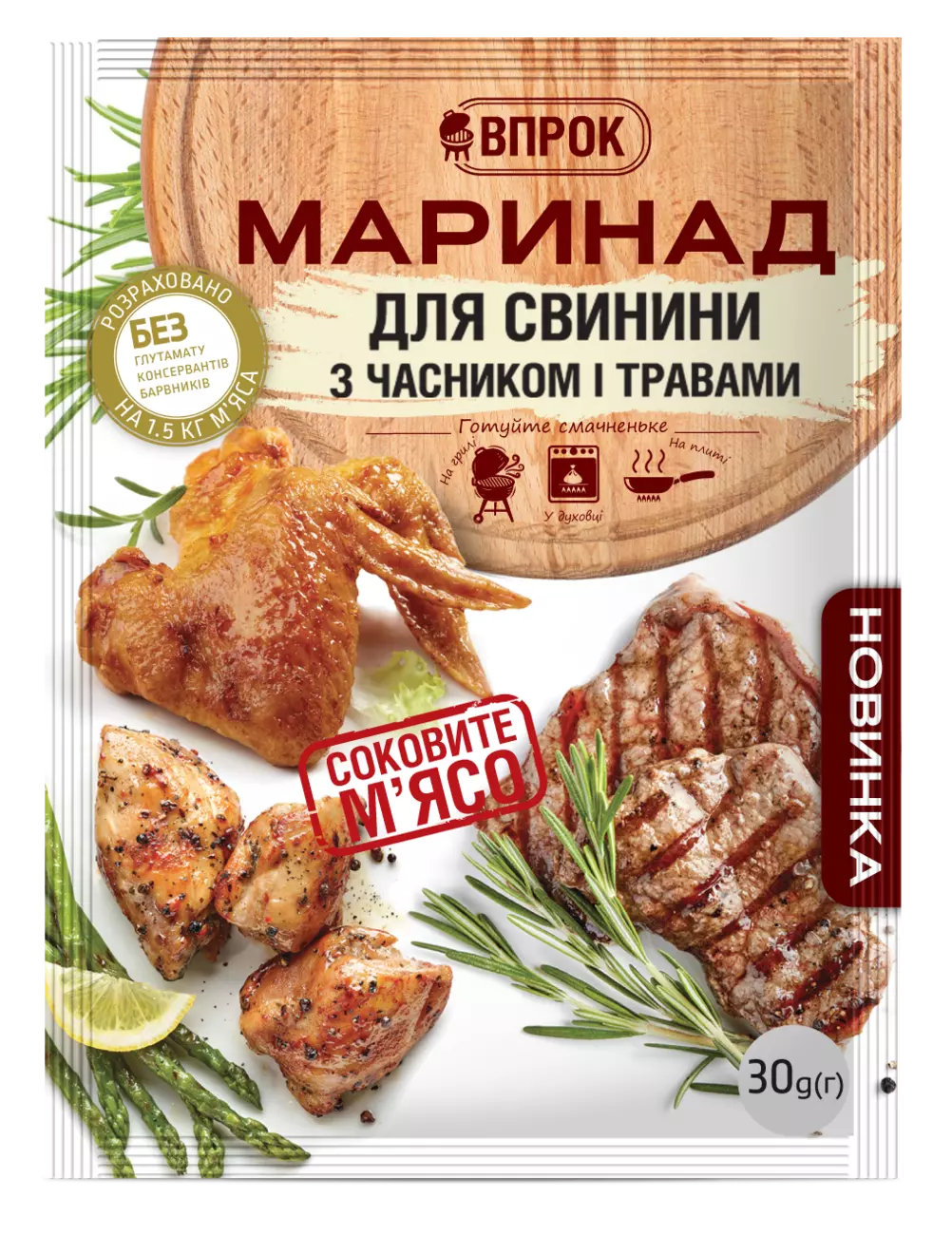 Приправа маринад для свинини з часником і травами 30 г ТМ "Впрок"